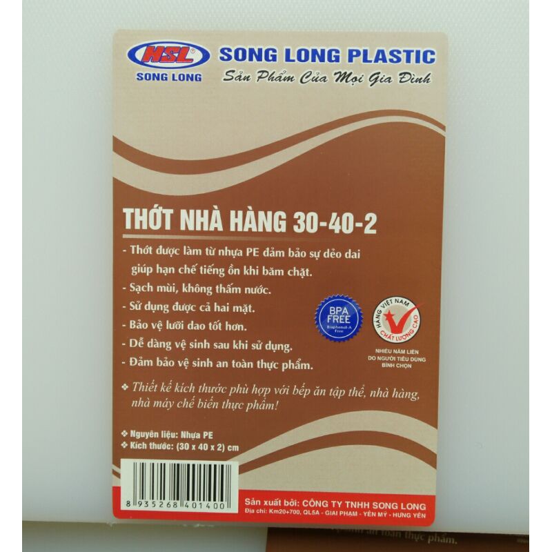 Nhà cửa & Đời sống > Dụng cụ nhà bếp > Thớt || Thớt nhà hàng Song Long nhựa SIÊU DÀY nhiều sizeCòn hàng