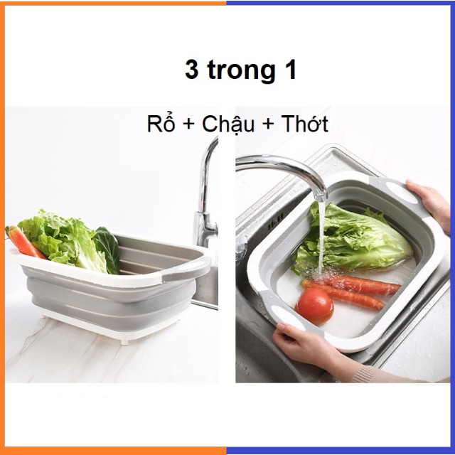 - Thớt Nhựa Đa Năng là tích hợp của 3 sản phẩm Chậu rửa, thớt thái thực phẩm và rổ.