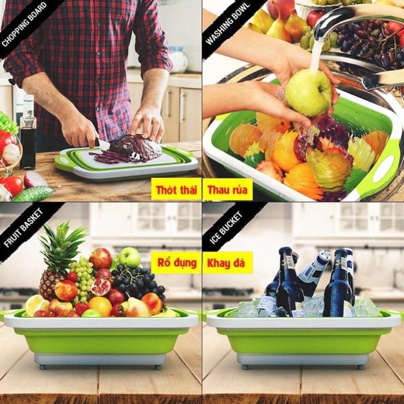 Với chất liệu nhựa cứng PP và silicol dẻo dai chỉ cần kéo tuột lên chiếc thớt thái chặt đồ của b sẽ thành chiếc chậu rửa, và 1 chiếc rổ đựng đồ tiện lợi