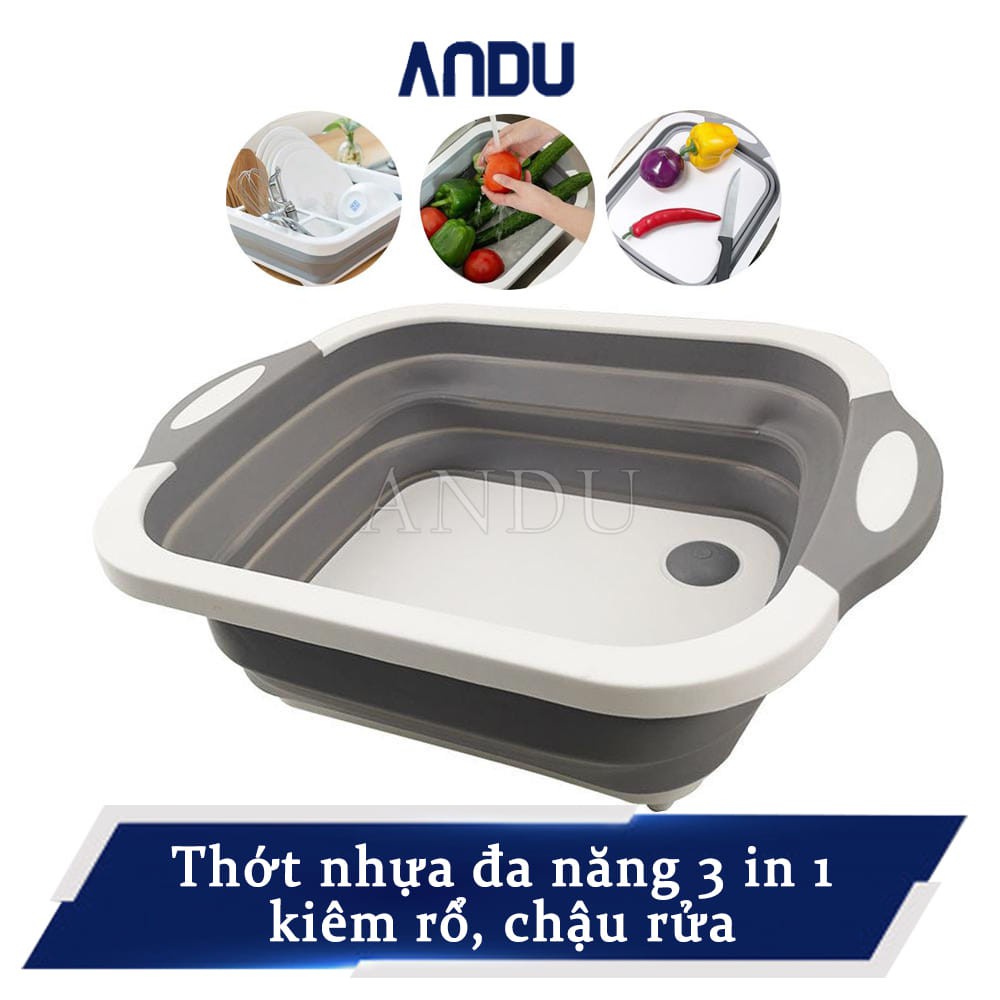 Thớt Nhựa Đa Năng 3 Trong 1 Kiêm Rổ Đựng và Chậu Rửa Tiện Dụng- Sản phẩm hướng tới một xu hướng gọn nhẹ và đa dụng cho căn bếp của bạn. Một chiếc chậu rửa gấp gọn hay một cái thớt nhựa có thể biến thành chậu rửa. Đây là một sản phẩm vô cùng tiện lợi và đa năng cho các chị em nội trợ. Sản phẩm được làm bằng nhựa và cao su cao cấp an toàn cho sức khỏe người sử dụng. Có độ bền cao.