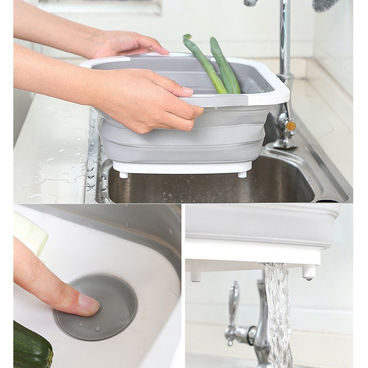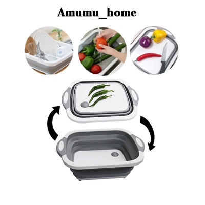- Công dụng: Chậu rửa rau và có thể gấp gọn để làm thớt thái hoặc băm.