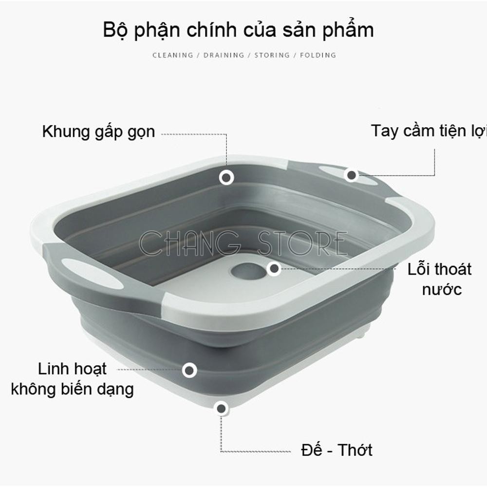- Công dụng: Chậu rửa rau và có thể gấp gọn để làm thớt thái hoặc băm.