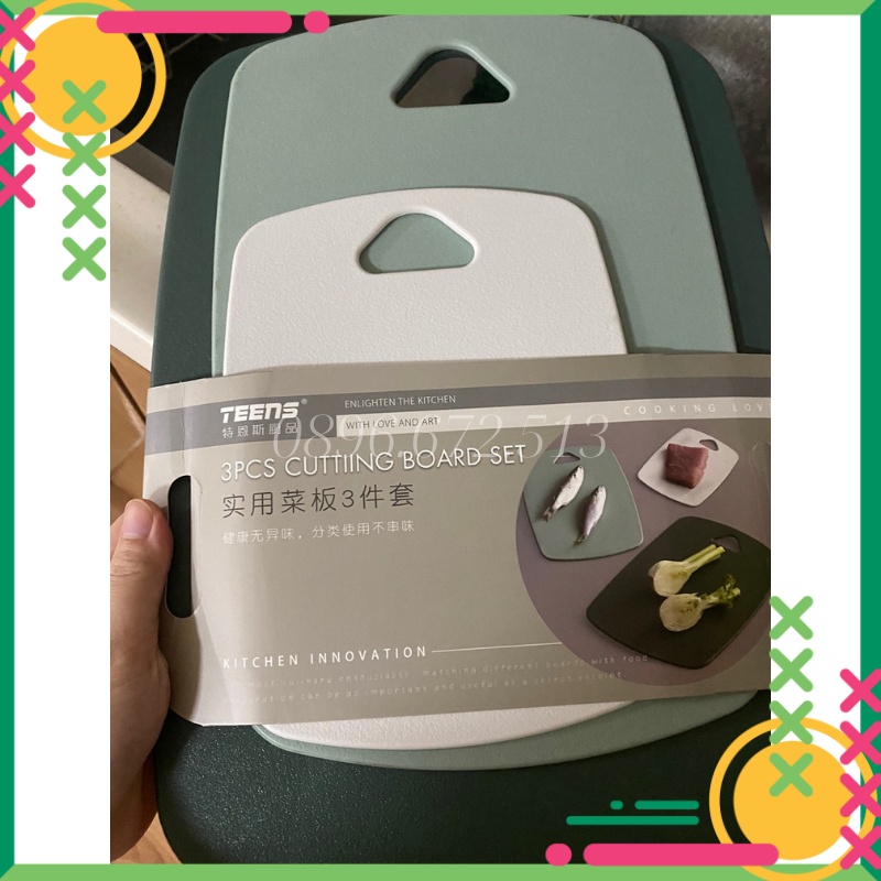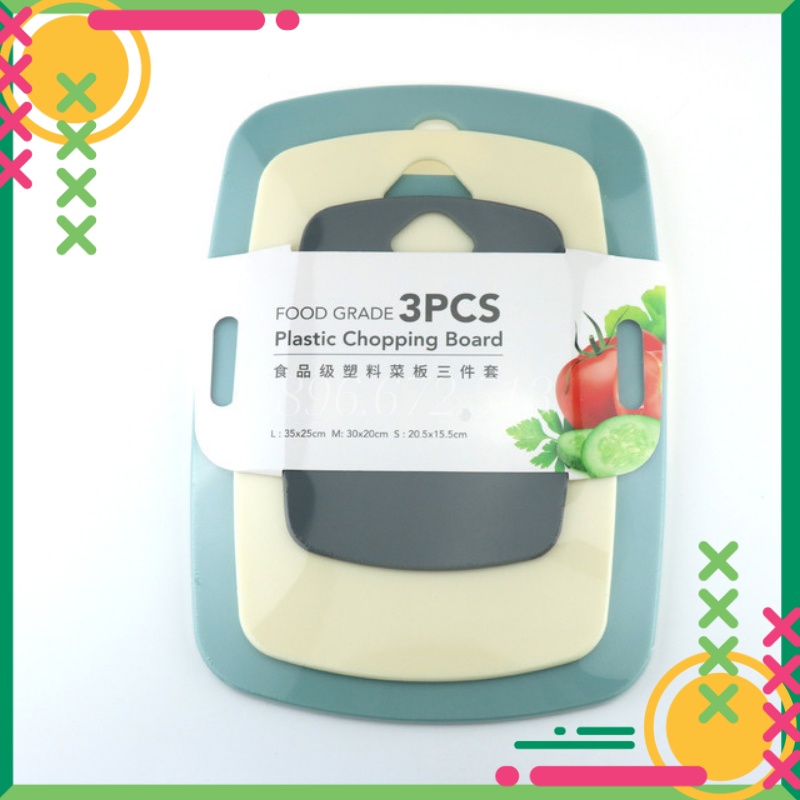 Thớt Nhựa Dày Kháng Khuẩn Chống Trơn Trượt Cao Cấp Màu Đẹp Cực Xinh Tiện Dụng Hàng Xuất KhẩuThớt nhựa bao gồm gồm: 3 thớt kích thước 35x25cm, 30x20cm, 20x15cm với 3 chức năng khác nhau phân biệt theo màu: chế biến cá, chế biến thịt và chế biến rau củ quả tùy theo phân loại của từng gia đình cực kì tiện dụng, sạch sẽ an toàn.