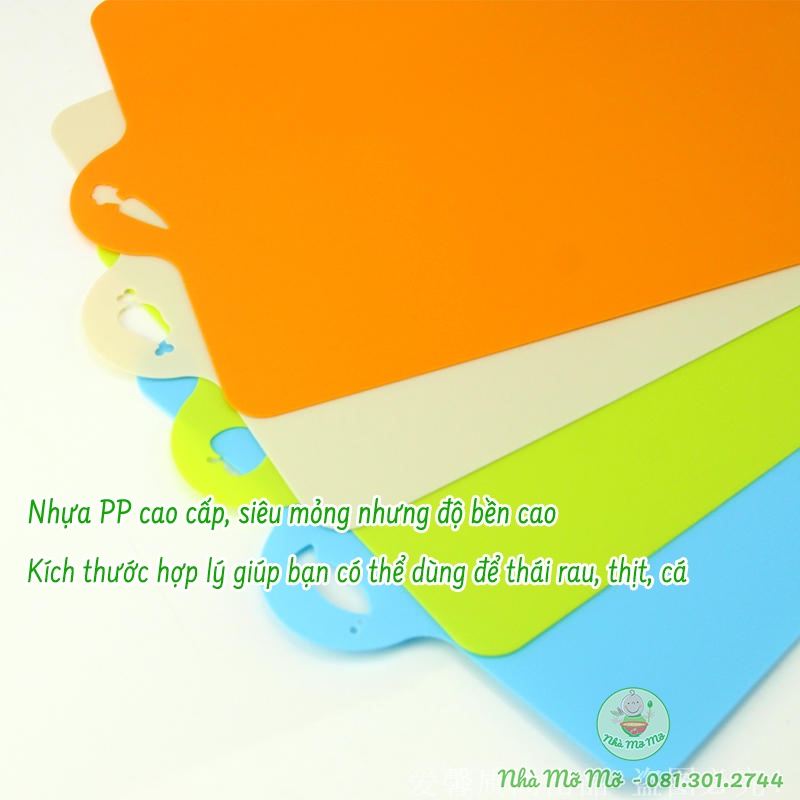 Sản phẩm bằng nhựa PP cao cấp, siêu mỏng nhưng độ bền cao, Không sản sinh ra các chất độc hại. Tuyệt đối an toàn cho người sử dụng. Kích thước hợp lý giúp bạn có thể dùng để thái rau, thịt, cá