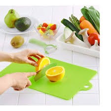 Thớt nhựa uốn dẻo dễ dàng, dùng để thái, chế biến thực phẩm, hoa quả và sau khi thái có thể trút thực phẩm rất tiện lợi, nhanh chóngThiết kế có lỗ treo gọn gàng, sạch sẽ, đảm bảo vệ sinh