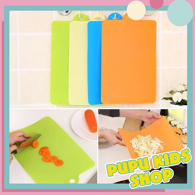 Thớt nhựa uốn dẻo dễ dàng, dùng để thái, chế biến thực phẩm, hoa quả và sau khi thái có thể trút thực phẩm rất tiện lợi, nhanh chóng