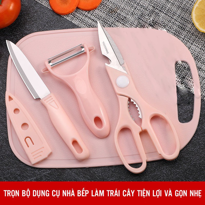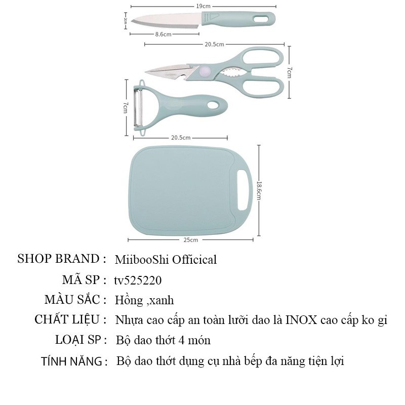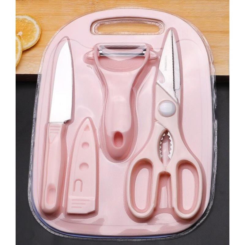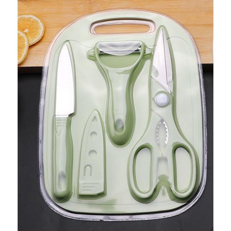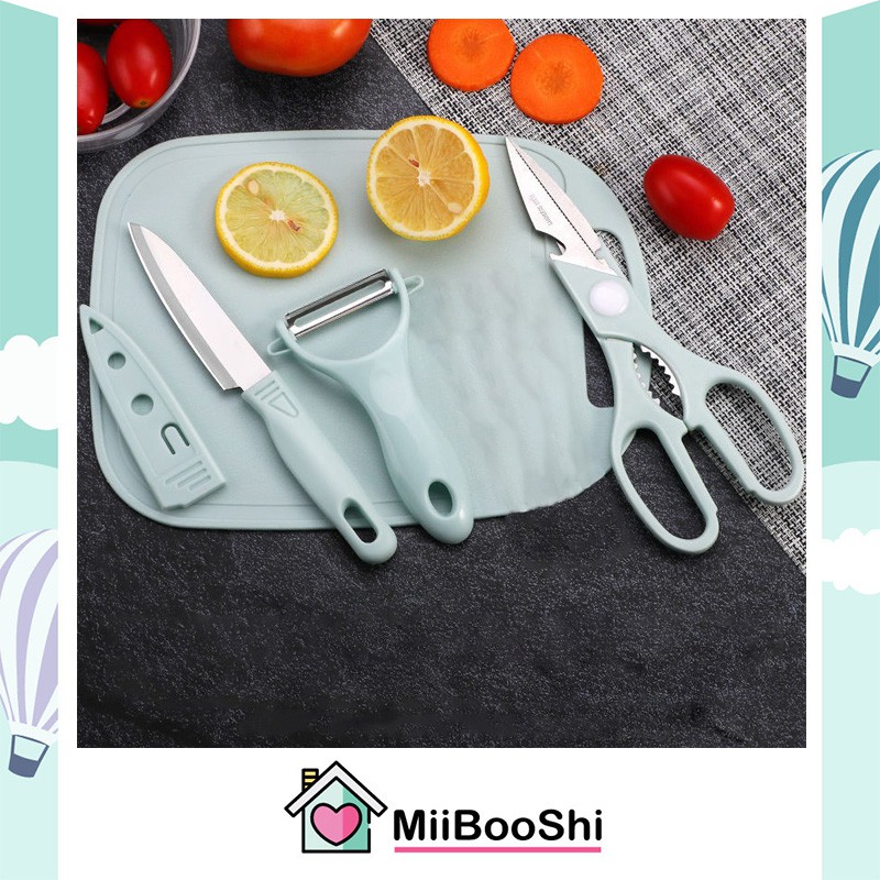 Bộ thớt nhựa dẻo kháng khuẩn set 4 món dụng cụ nhà bếp thông minh tiện lợi MiibooShi tv525220SET TRỌN BỘ DAO, DAO BÀO, KÉO, THỚT CAO CẤP
