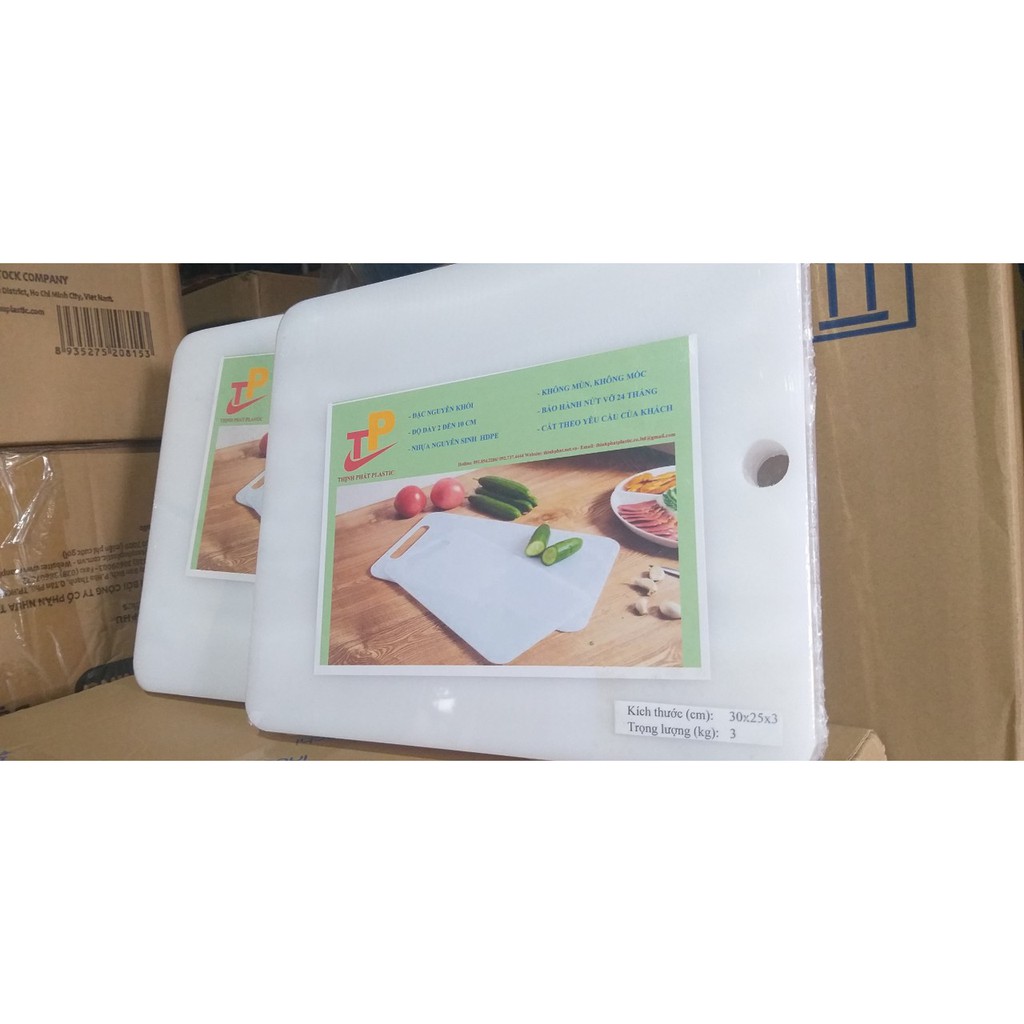 - Thớt có màu trắng. chất liệu PE nguyên khối, hàng Việt Nam.