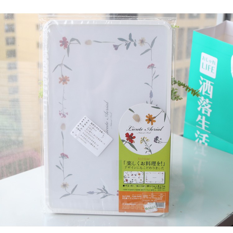 "- Chất liệu: nhựa cao cấp. 2 bề mặt thớt được in hình hoa văn bắt mắt, bề mặt được làm ráp giúp tránh trơn trượt trong quá trình cắt, thái đồ ăn- Kích thước: 21cm x 32,5cm x 0,9cm