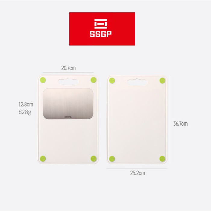 Thớt nhựa - inox 304 - ( Nhựa : 25.2x36.7cm 828g) ( Inox : 20.7x12.8cm )