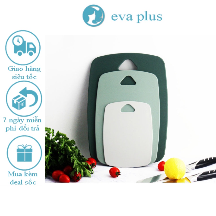 - 1 set vs 3 thớt có thể phân loại Thớt thái đồ ăn chín, thớt thái rau, thái cá ,.. cực kì tiện dụng, sạch sẽ an toàn!