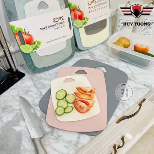 Thớt nhựa kháng khuẩn cao cấp set 3 thớt 3 màu - Huy Tưởng