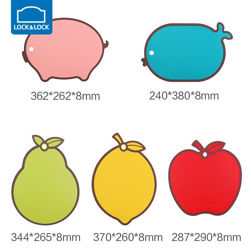 - Thớt nhựa Lock&lock chống trượt được thiết kế nhỏ gọn với nhiều hình thù ngộ nghĩnh dễ thương cùng kết hợp với màu sắc tươi sáng góp phần tô điểm cho không gian bếp nhà bạn thêm sinh động.