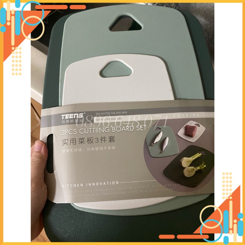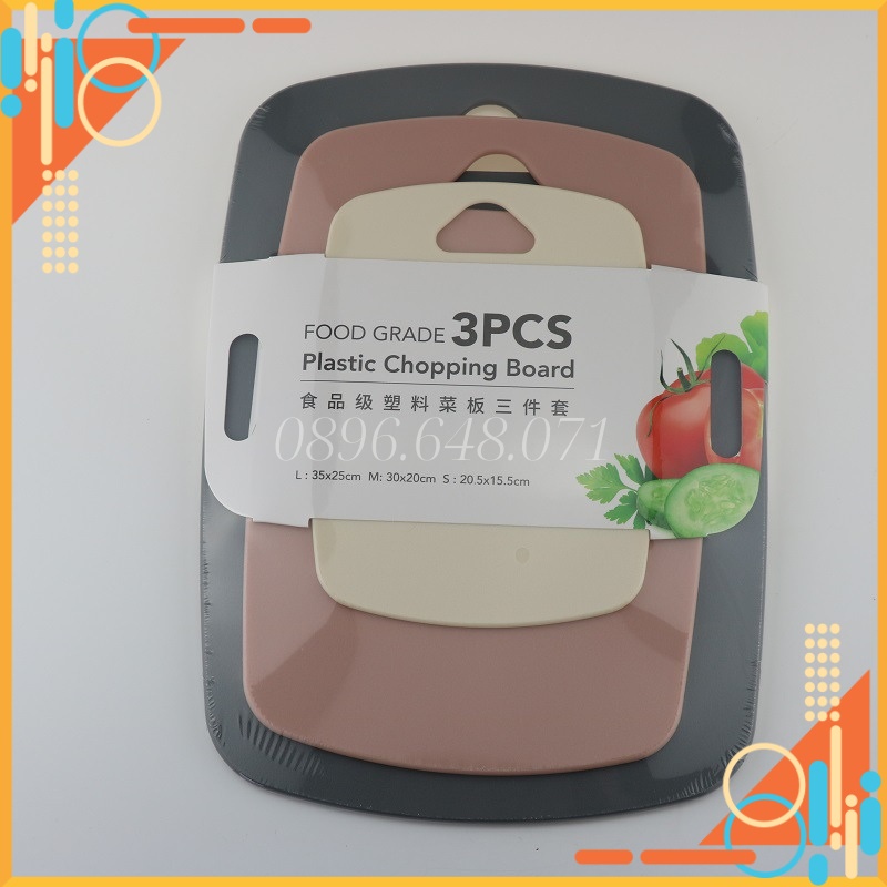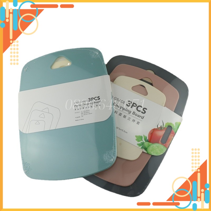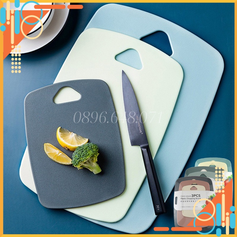 Thớt Nhựa Kháng Khuẩn Dày Chống Trơn Trượt Cao Cấp Hàng Xuất Khẩu Màu Đẹp Cực Xinh Tiện DụngThớt nhựa bao gồm gồm: 3 thớt kích thước 35x25cm, 30x20cm, 20x15cm với 3 chức năng khác nhau phân biệt theo màu: chế biến cá, chế biến thịt và chế biến rau củ quả tùy theo phân loại của từng gia đình cực kì tiện dụng, sạch sẽ an toàn.