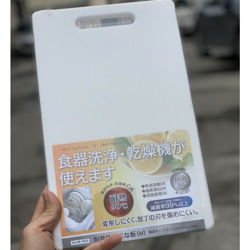 "- Chất liệu: nhựa Polyethylene, bề mặt có tráng ion bạc (Ag) giúp kháng khuẩn, có thể sử dụng được 2 mặt. Chịu nhiệt được đến 90 độ C, có thể sử dụng trong máy rửa chén.- Kích thước: 32cm × 20cm × 1.3 cm