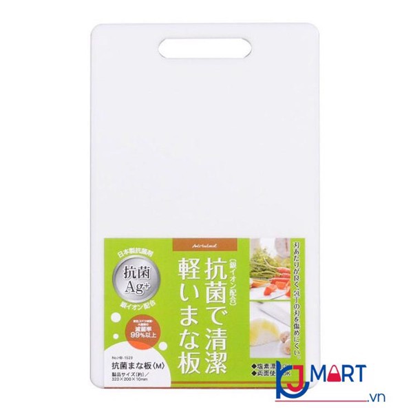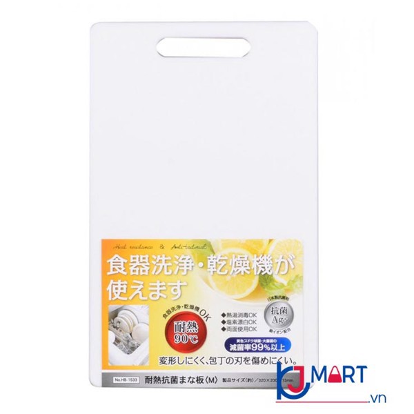 THỚT NHỰA KHÁNG KHUẨN - NHẬT BẢN- Chất liệu: nhựa Polyethylene, bề mặt có tráng ion bạc (Ag) giúp kháng khuẩn, có thể sử dụng được 2 mặt. Chịu nhiệt được đến 90 độ C, có thể sử dụng trong máy rửa chén.