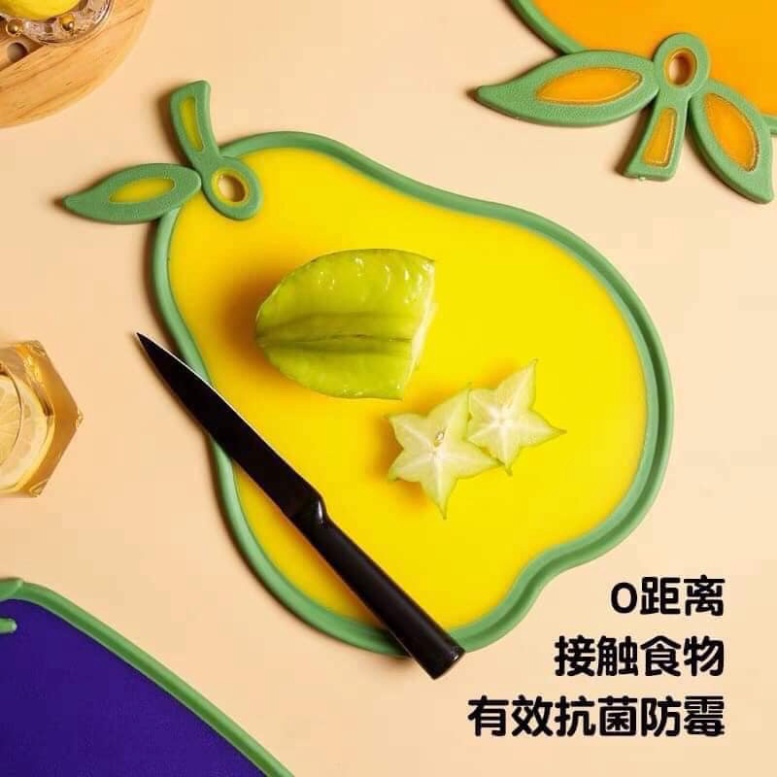 Thớt Nhựa Kháng Khuẩn Hình Hoa Quả- Chất Liệu: Nhựa PP, viền silicon, hợp chất kháng khuẩn tự nhiên làm từ vỏ sò