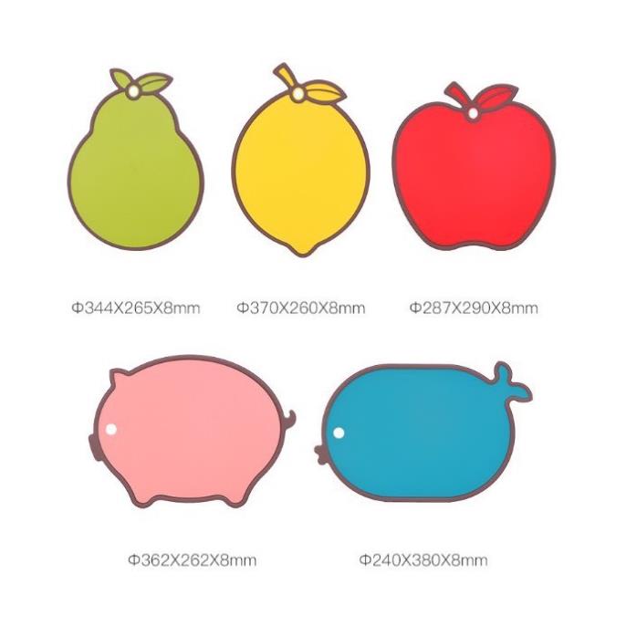 THỚT NHỰA KHÁNG KHUẨN HOA QUẢ SIÊU XINh- Nguyên liệu: Nhựa PP, viền silicon, hợp chất kháng khuẩn tự nhiên làm từ vỏ sò