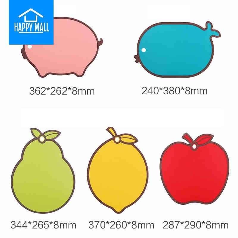 Thớt gồm nhiều mẫu : cá heo , trái lê , trái chanh , cá hồng , táo đỏ.