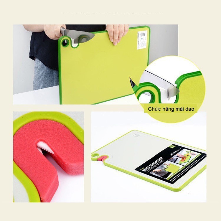 Thớt tiện dụng có gắn sẵn mài dao trên thớt, chỉ cần liếc nhẹ là có ngay lưỡi dao sắc bén để tiếp tục thao tác.
