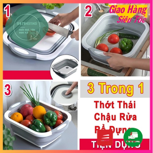 Chậu, thau kiêm thớt đa năng gấp gọn tiện dụng 3 trong 1 kích thước 30 x 40cmĐi đâu thì đi nhưng về nhà vô căn bếp thì phải nhất định có cái thớt :))) thớt gì cũng tiện nhưng vẫn k tiện bằng Thớt 3in1 vừa thớt vừa chậu luôn nha quý dị . Màu xanh màu màu hường thì vẫn k đẹp bằng Thớt 3in1 màu Xám,trắng nhé. Nên mọi người hãy rinh ngay về cho căn bếp nhà mình 1 cái Thớt 3in1