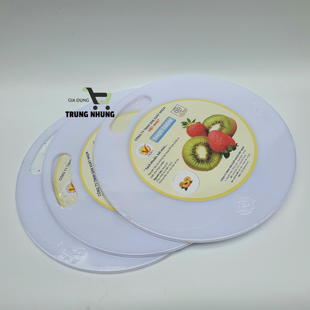 Thớt nhựa, thớt kháng khuẩn Việt NhậtThớt nhựa tròn Việt Nhật, làm từ nhựa PP an toàn cho sức khỏe