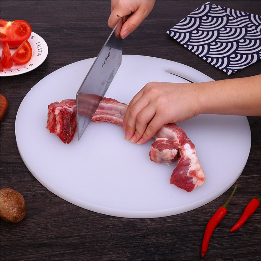 - Thớt nhựa tròn giúp bạn dễ dàng cắt gọt rau củ, trái cây, hoặc dùng để cắt thịt và các loại thực phẩm khác.