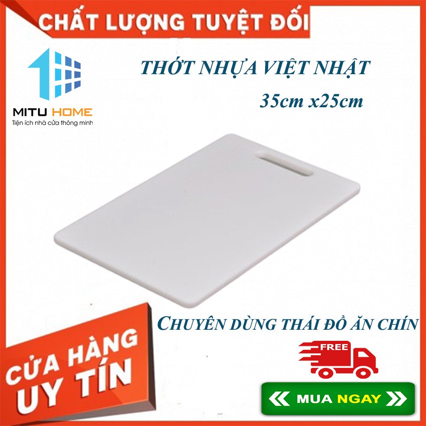 Mô tả sản phẩm: THỚT NHỰA VIỆT NHẬT - HÌNH CHỮ NHẬT - MITUHOME - CHUYÊN DÙNG THÁI ĐỒ ĂN CHÍN LOẠI 35cm x25cmChất liệu : Nhựa PP tinh khiết an toàn thực phẩm