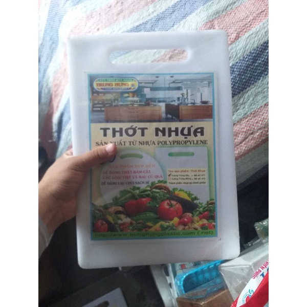 - Thớt được làm từ nhựa trắng nguyên chất, không mùi, không độc hại, có chứng nhận an toàn cho sức khỏe người dùng