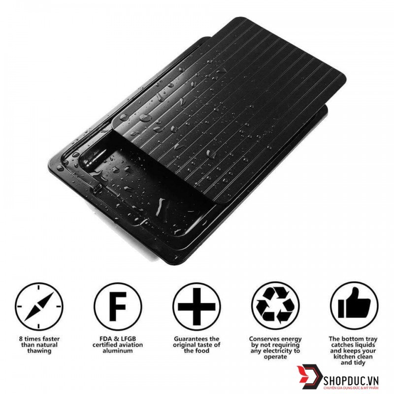 Cách dùng: tráng 1 lượt nước nóng qua thớt, vẩy ráo nhanh trước khi đặt thực phẩm lên. Chất liệu nhôm và thiết kế các khe rãnh dưới đáy thớt sẽ dẫn nhiệt nhanh chóng từ thớt và không khí tự nhiên giúp làm tan đá thực phẩm