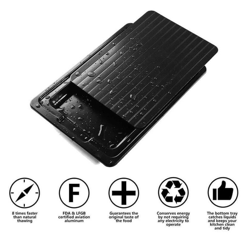 -Máng xối tích hợp ngăn không cho chất lỏng thực phẩm tràn vào bàn bếp của bạn và giữ cho nhà bếp của bạn sạch sẽ và ngăn nắp. Dễ sử dụng, chỉ cần đặt thức ăn lên đĩa khử băng và chờ cho nó tan băng.