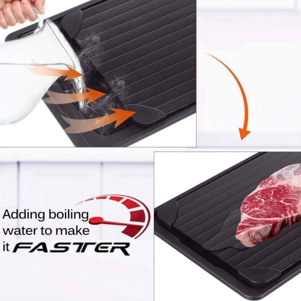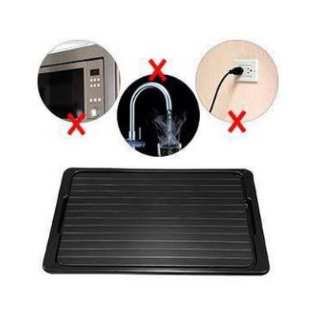 - Cách dùng: tráng 1 lượt nước nóng qua thớt, vẩy ráo nhanh trước khi đặt thực phẩm lên. Chất liệu nhôm và thiết kế các khe rãnh dưới đáy thớt sẽ dẫn nhiệt nhanh chóng từ thớt và không khí tự nhiên giúp làm tan đá thực phẩm.