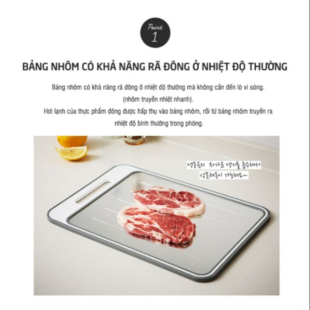 - Rã đông tự nhiên thực phẩm. Với chất liệu làm từ alluminum tản nhiệt cao cấp, thớt rã đông có khả năng hấp thụ hơi lạnh từ thực phẩm cấp đông và tỏa vào môi trường xung quanh, khiến thực phẩm rã đông tự nhiên mà không cần lò vi sóng.