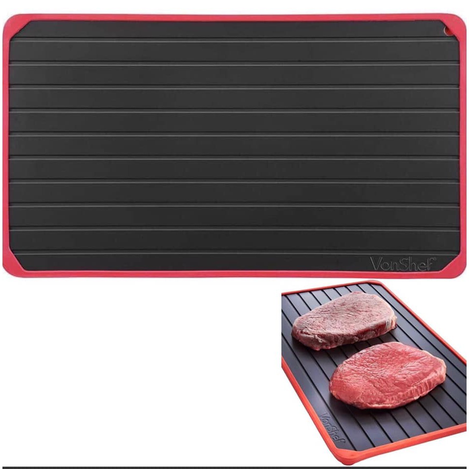 - Tấm rã đông VonShef đúng kiểu tấm thớt phủ tan thực phẩm lạnh, và không cần làm nóng sơ hay nước nóng làm tan rã đông thực phẩm.