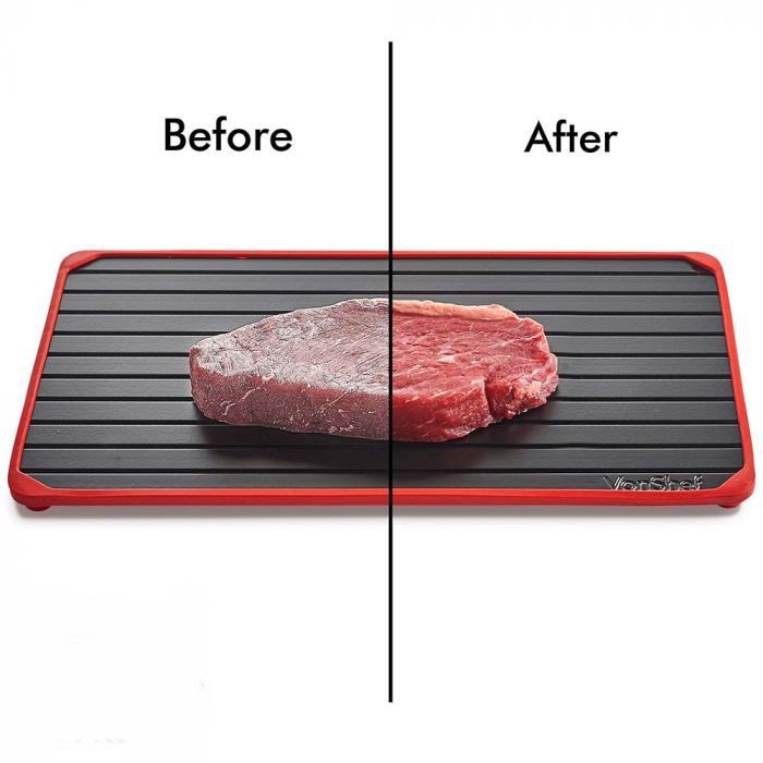 – Tấm rã đông VonShef đúng kiểu tấm phủ tan và thần kỳ vẫn lạnh trong suốt quá trình và không yêu cầu nóng sơ hay nước nóng gì hết, đơn giản bạn chỉ cần đặt thức ăn để được làm tan trên đĩa và nó sẽ tan nhanh hơn 10 lần so với nhiệt độ thông thường.