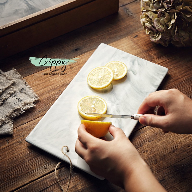 Nhà cửa & Đời sống > Dụng cụ nhà bếp > Thớt || Thớt sứ marble chữ nhật, tròn - phụ kiện nhà bếp, trang trí chụp hình - Gippy DecorCòn hàng