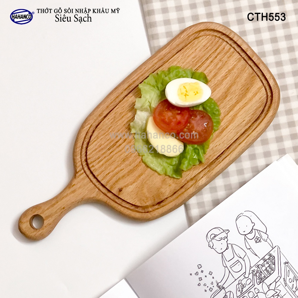 Giới thiệu Thớt tay cầm gỗ Sồi Mỹ (OAK) khay bánh mì/trái cây/ bít tết/pizza/phụ kiện ảnh - CTH553