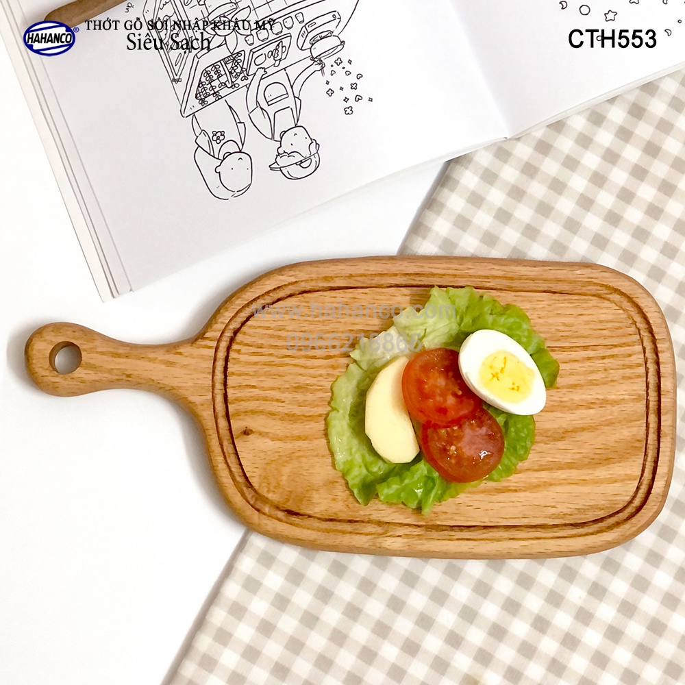 Thớt tay cầm gỗ Sồi nhập khẩu Mỹ - có rãnh bao quanh tiện dụng/Xuất Khẩu Châu Âu (CTH553)