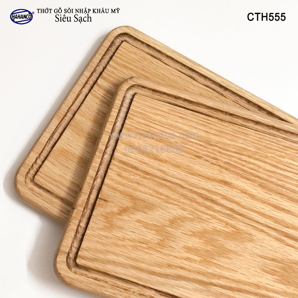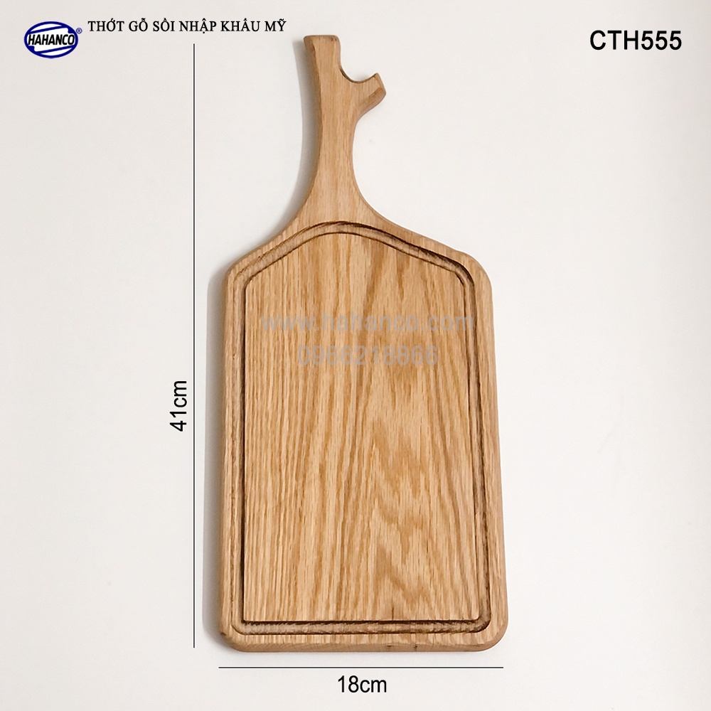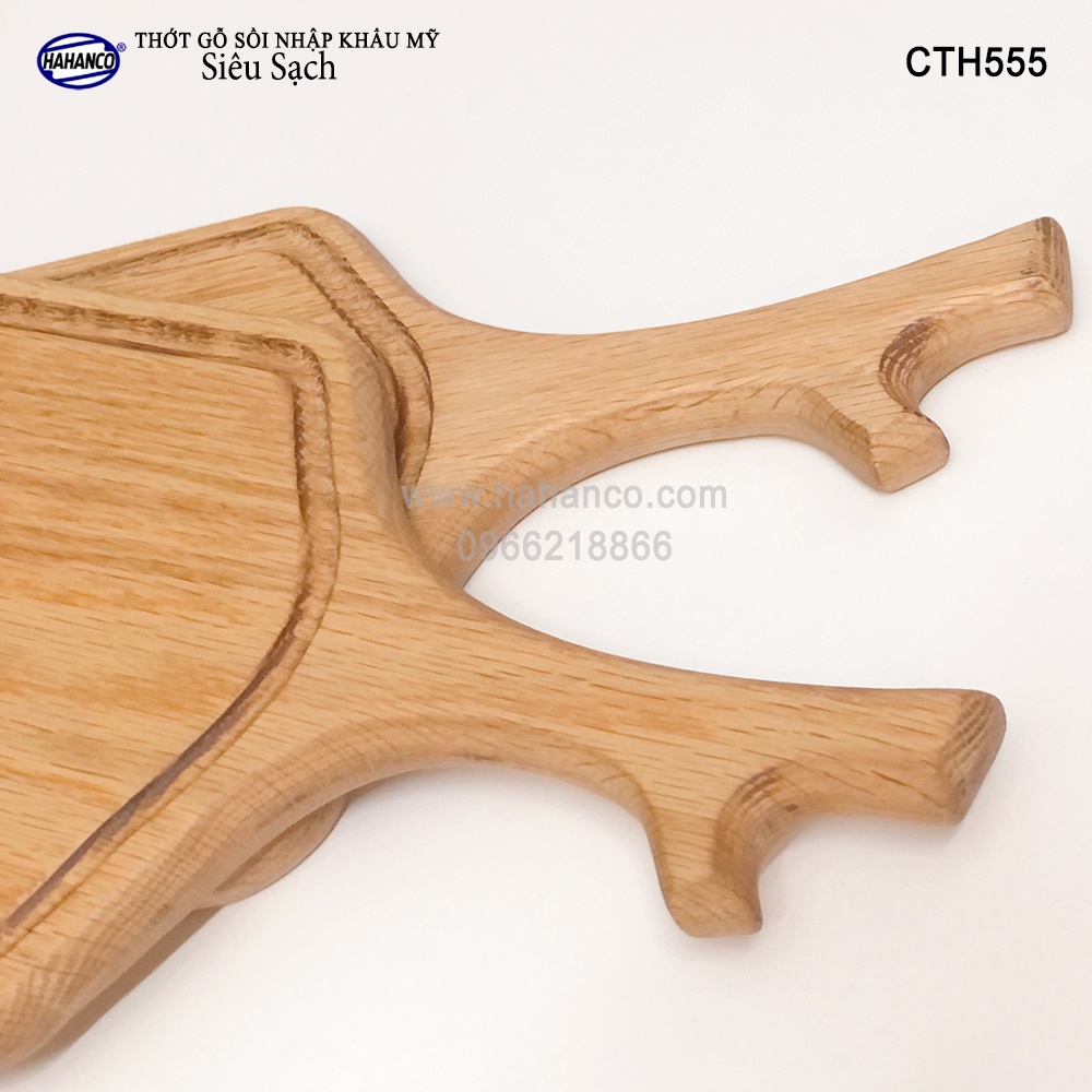 Thớt Tay Cầm Sừng Hươu HAHANCO Gỗ Sồi Nhập Khẩu Mỹ Có Rãnh Bao Quanh (CTH555)