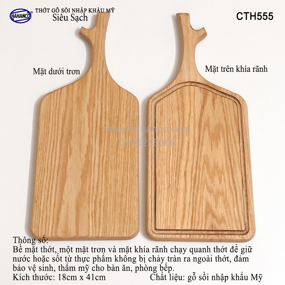 Giới thiệu Thớt Tay Cầm Sừng Hươu HAHANCO Gỗ Sồi Nhập Khẩu Mỹ Có Rãnh Bao Quanh (CTH555)