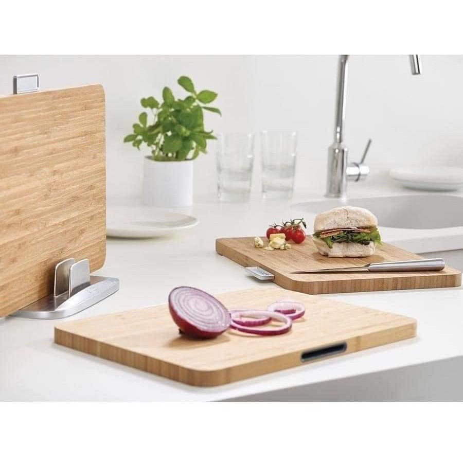 - Bộ thớt tre Joseph Joseph được thiết kế để giảm ô nhiễm chéo của các loại thực phẩm khác nhau với công nghệ ép các sợi tre với kết cấu bền vững và dẻo dai