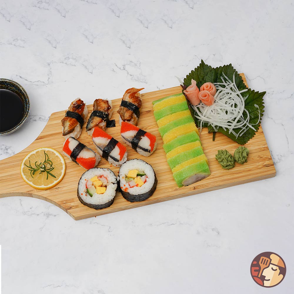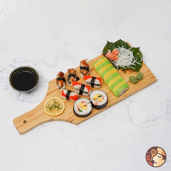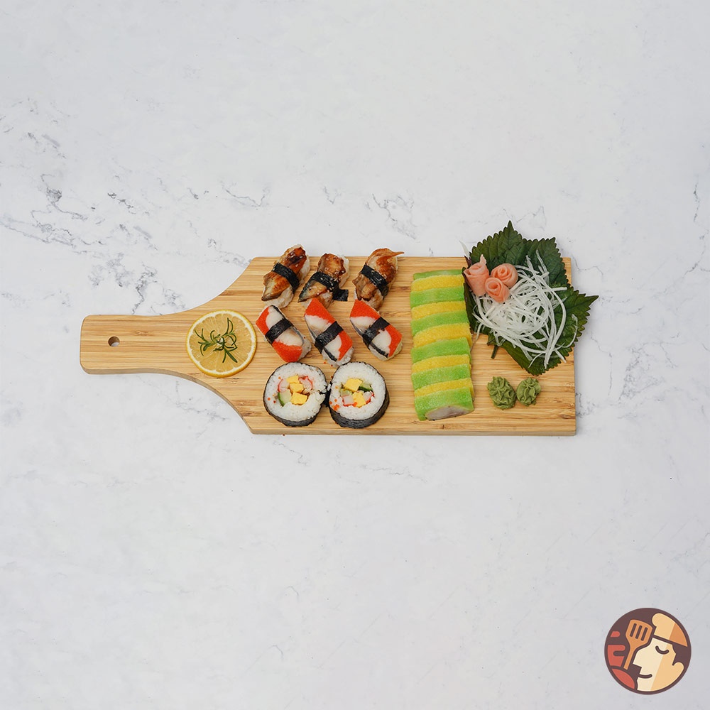 Thớt tre Chef Studio cao cấp hình chữ nhật có tay cầm 43x16x1.5 cm, an toàn cho sức khỏe, dùng cắt thái và bày trí đồ ăn