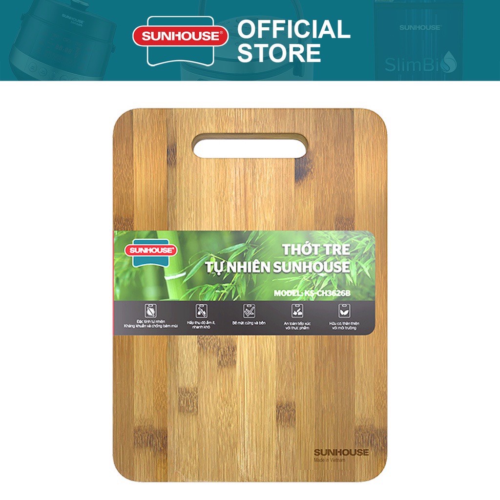 Nhà cửa & Đời sống > Dụng cụ nhà bếp > Thớt || Thớt tre tự nhiên SUNHOUSE KS-CH3626B/ CH2626B/ CH3020B/ CH3522BCòn hàng