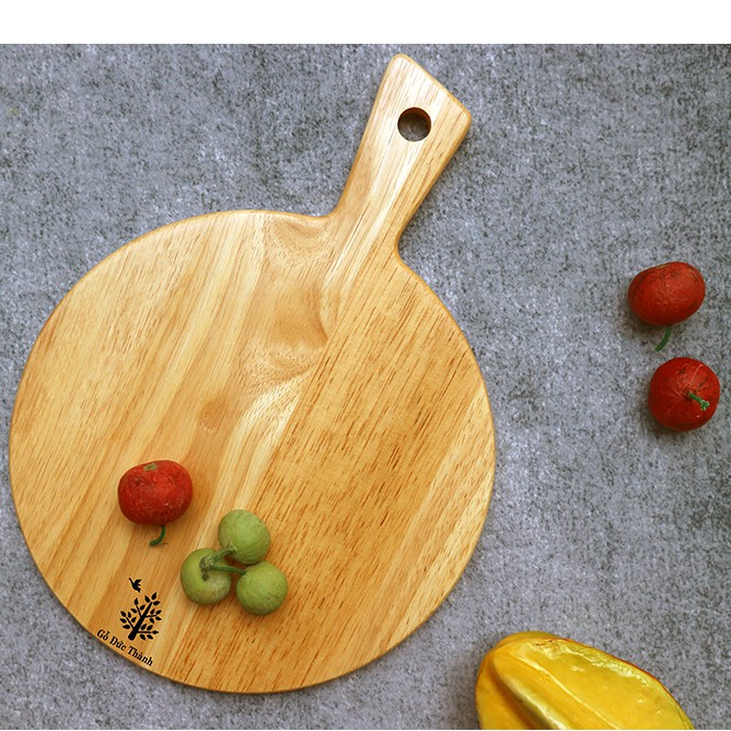 Thớt Tròn Có Tay Cầm Cao Cấp - Kích Thước 29.5 x 22 x 1.5 cm - Gỗ Đức Thành - Gỗ Cao Su Bền Đẹp sang Trọng Cho Gian Bếp