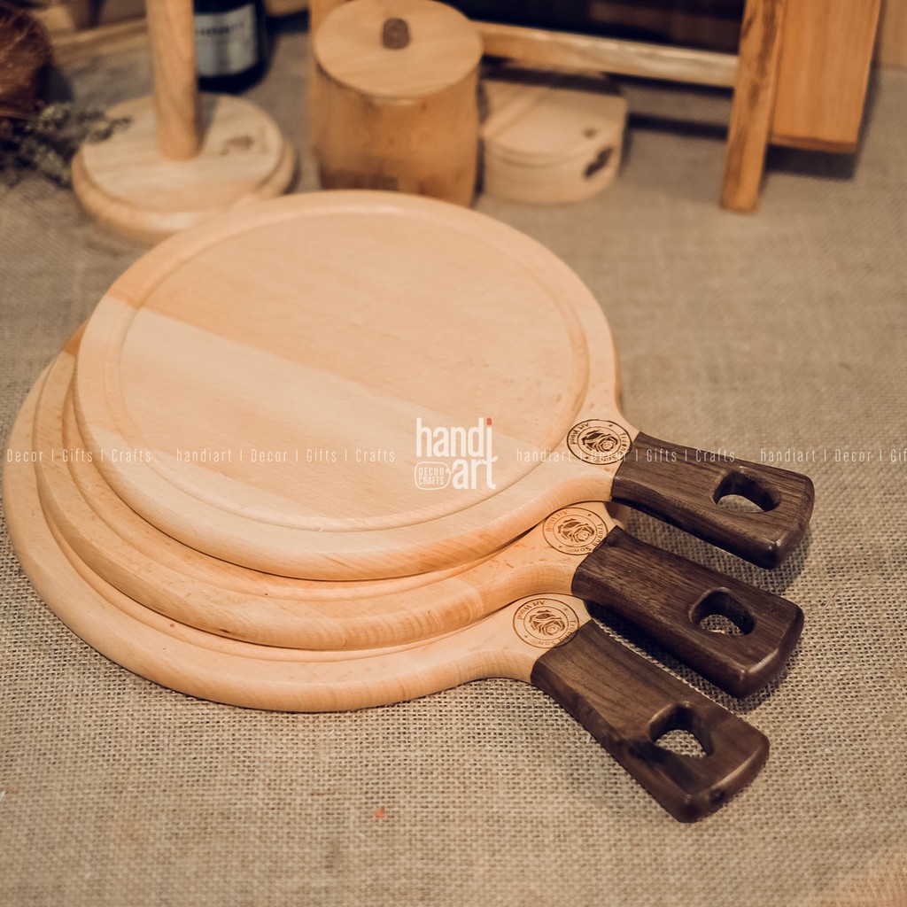 Thớt tròn gỗ beech tay cầm - Thớt gỗ tròn trang trí - Wooden cutting board