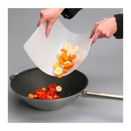 - Thớt dẻo có hình dáng giống như một chiếc xẻng, được làm từ nhựa dẻo cao cấp rất nhẹ và bền đẹp. Trên thớt dẻo có những đường rãnh được khắc sẵn, khi cần gấp thớt lại, bạn chỉ cần gập theo những đường rãnh này để tạo thành một chiếc khay xúc thực phẩm vô cùng tiện lợi với tay cầm chắc chắn.