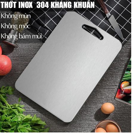 - Thớt inox Chất liệu Inox 304 kháng khuẩn, không gỉ sét, an toàn với thực phẩm