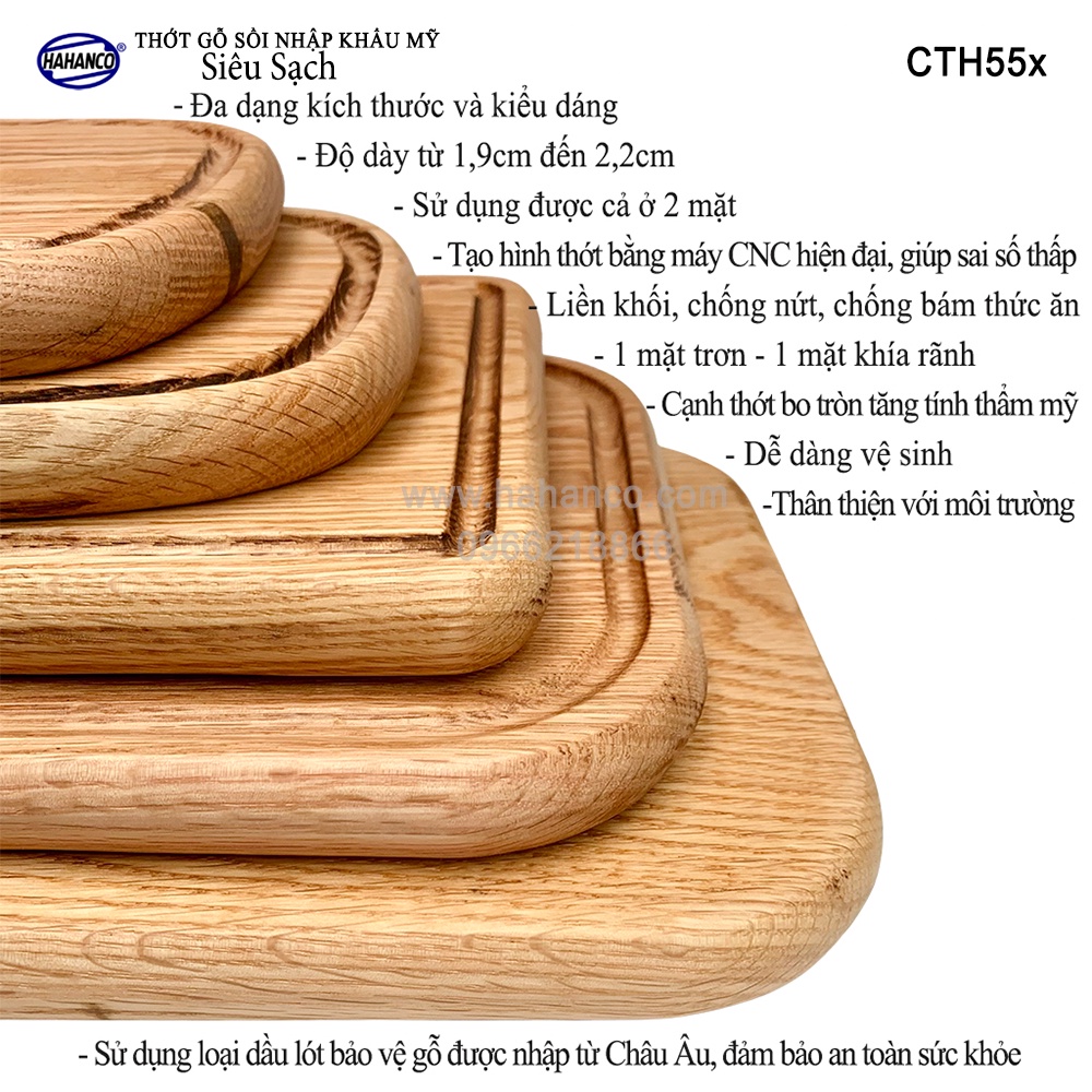 👉 Thớt được sản xuất từ gỗ Sồi 100% nhập khẩu từ Mỹ