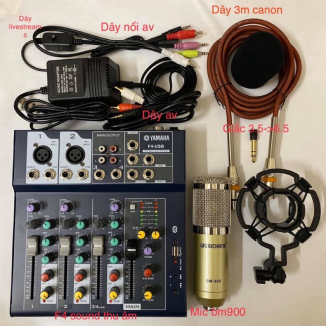 Bộ thu âm F4 live 3 mầu av+ dây chuyển AV dây canon 3m tặng tai nghe AkGBộ gồm có