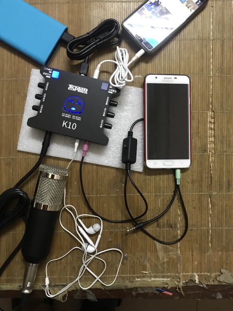 Thông tin bộ sản phẩm bộ thu âm đơn giản :1- soundcard thu âm k10 đủ dây lấy nhạc dây cấp nguồn chính hãng xox.